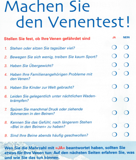 ob bei Ihnen die Möglichkeit eines Venenleidens schon besteht oder gewisse Voraussetzungen bestehen könnten. Je nach Ergebnis sollten Sie die richtigen Massnahmen einleiten.